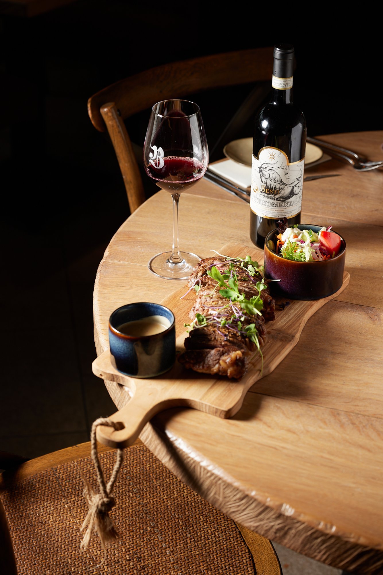Tonijnsteak, bearnaise, gepofte kersttomaatjes & frietjes