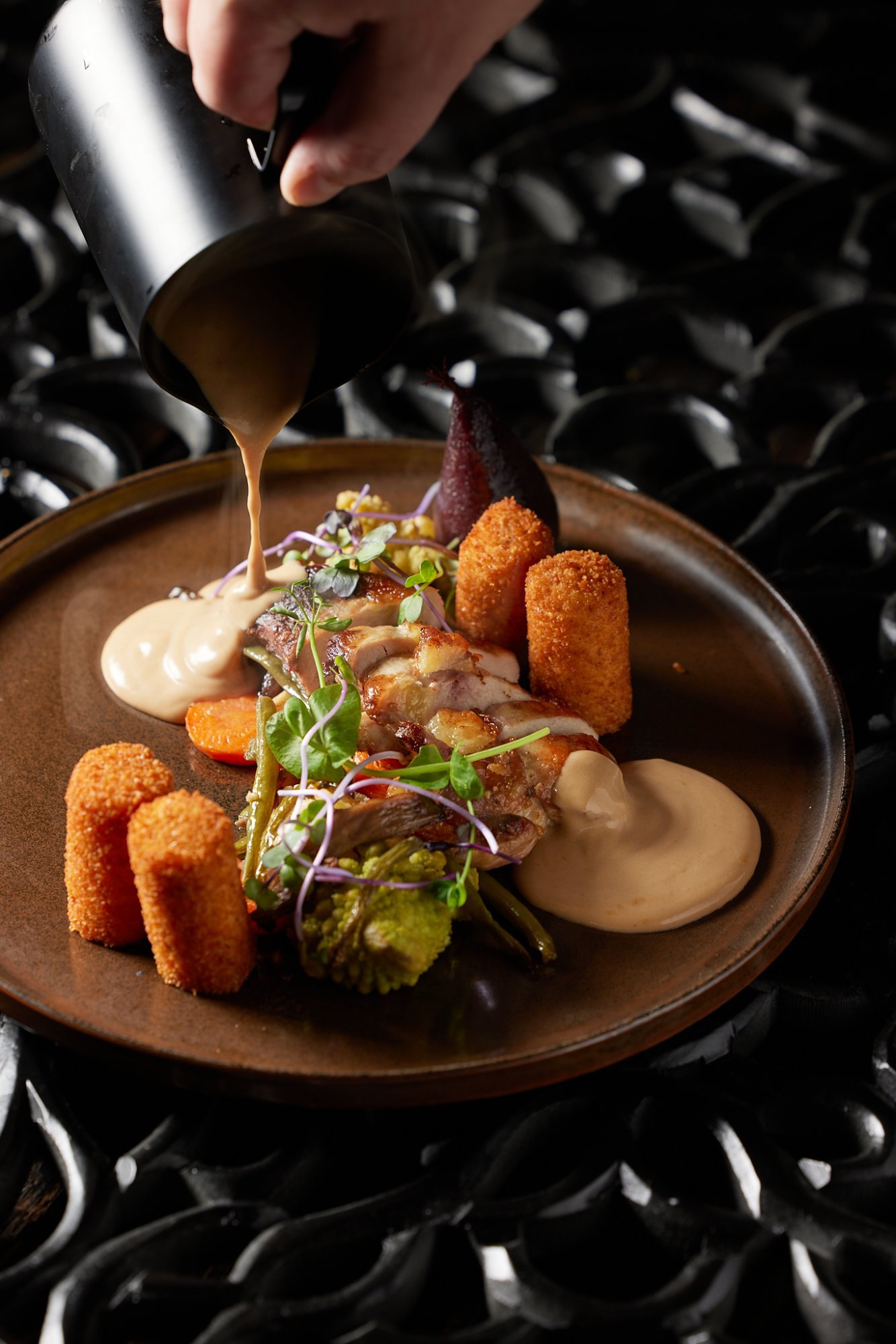 1/2 kip, boontjes, champignonsaus & krieltjes